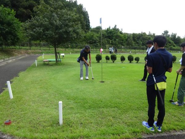 今回はランダムな組み合わせとし、全14組が親睦を深め、ナイスショットや劇的なナイスインが出る度に歓声が上がっていました。