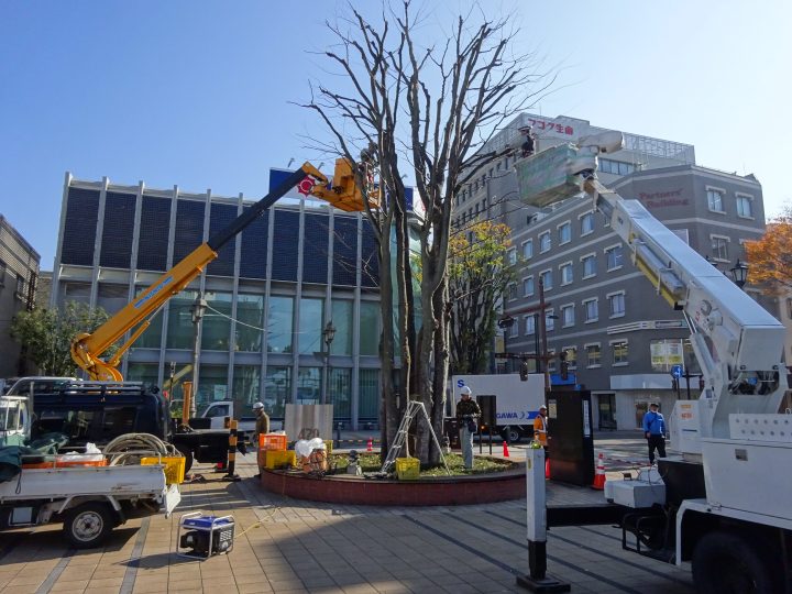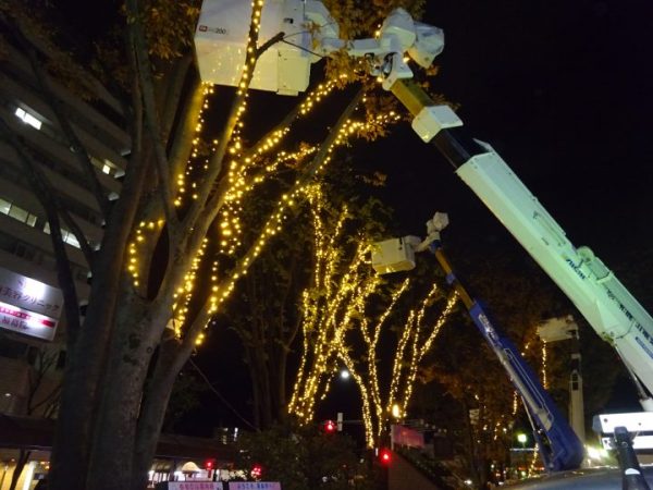 パセオ通りは組合員の皆様と、福島駅東口駅前広場は当組合青年部会の協力により、LEDが街路樹に装飾されました。