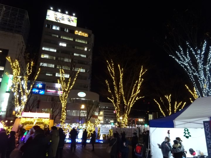 パセオ通りは12月12日㈮午後5時30分、福島駅東口駅前広場は同日の午後6時にイルミネーションが点灯され、福島市民の心に希望の光が灯されました。
